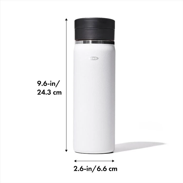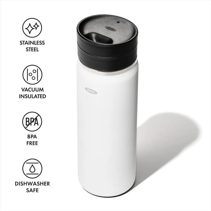 Whether your first sip is at the kitchen counter, in the car or on a walk with the dog, with the OXO Good Grips Thermal Mug with SimplyCleanâ„¢ Lid, you can enjoy your favorite brew without missing a beat. Professional-grade stainless steel lets the of your drink shine through, while the BetterTempâ„¢ vacuum insulation keeps things hot for 12 hours or cold for 24 hours. The SimplyCleanâ„¢ lid twists open for sipping and fully disassembles for thorough cleaning. A sweatproof coating provides a secure grip no matter where the day takes you. This travel mug is sized to fit most coffee makers and cup holders for easy brewing and stowing. Dishwasher safe.Features Professional-grade stainless steel construction BetterTemp â„¢ vacuum insulation keeps drinks hot for 12 hours and cold for 24 Easy twist opening for seamless sipping Sized to fit most cup holders Holds 20 oz/590 mL SimplyCleanâ„¢lid disassembles for thorough cleaning, dishwasher safe