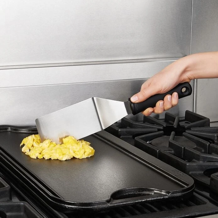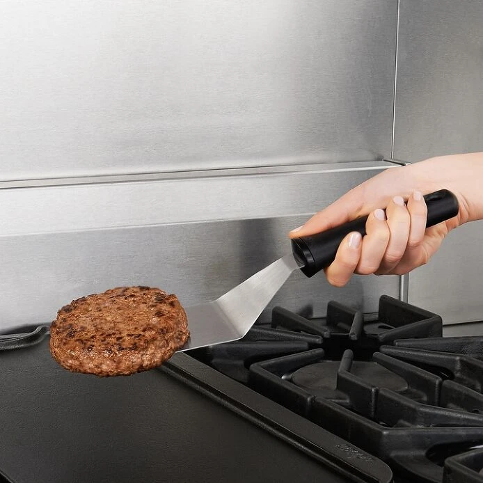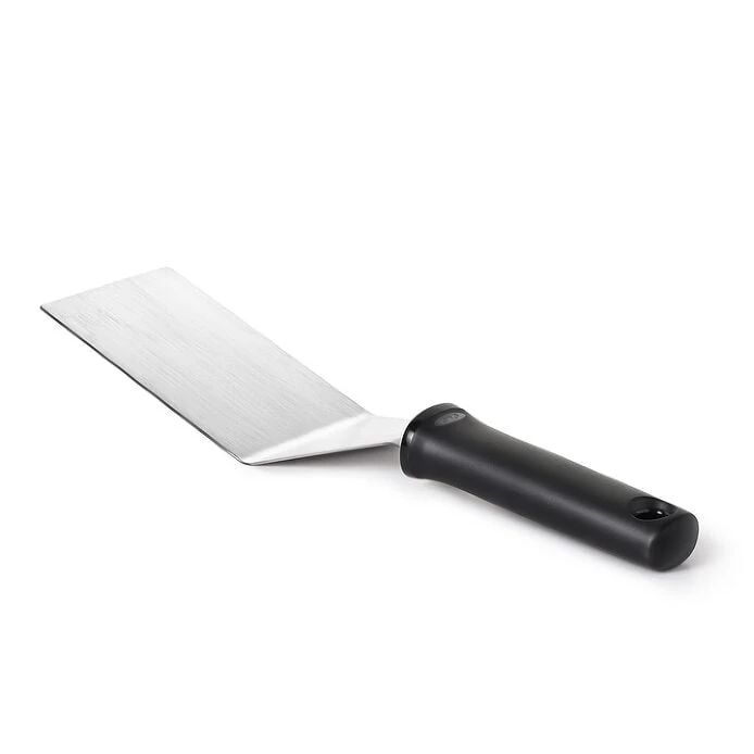 The Good Grips Restaurant Turner is perfect for flipping burgers, making pancakes, sautéing vegetables, scraping griddles and more. All three edges are beveled for chopping food while cooking, just like a professional chef or line cook! The large head easily lifts large food while keeping it intact, and flexes to make transferring and turning easy. The flared non-slip handle provides a comfortable grip and helps keep your hand away from hot food while in use.