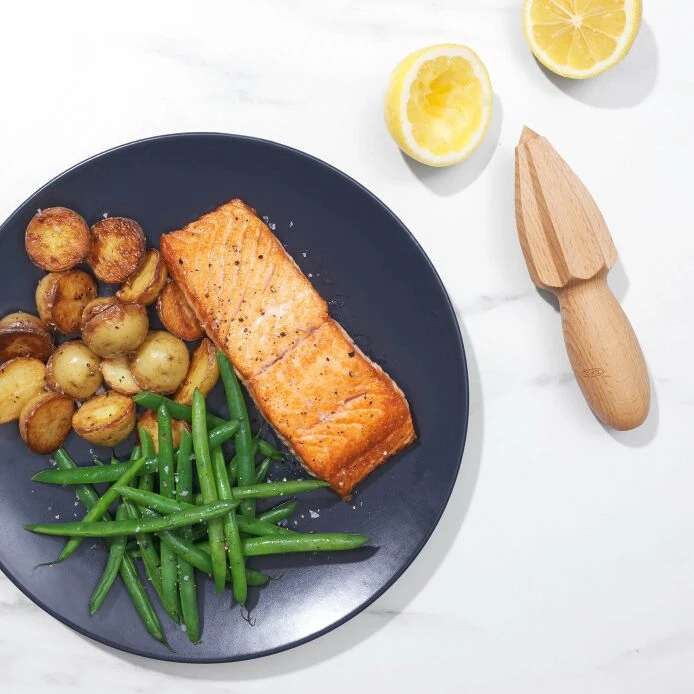 The Wooden Reamer is made of solid beechwood, which does not react with acidic fruits, making it last longer and stay stronger. The pointed tip and sharp edges make it easier to begin and continue the juicing process. We do not recommend washing wooden tools in the dishwasher.