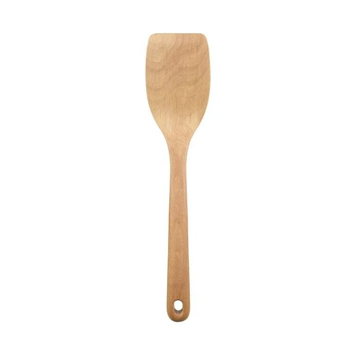 Our wooden utensils are made of solid, one-piece beech wood, and designed for comfort and utility. Their distinctive straight-sided shape allows better reach along walls and in corners of cookware. A natural oil finish coats and protects the wood. Safe for non-stick cookware. Hand wash only.